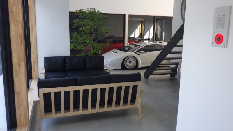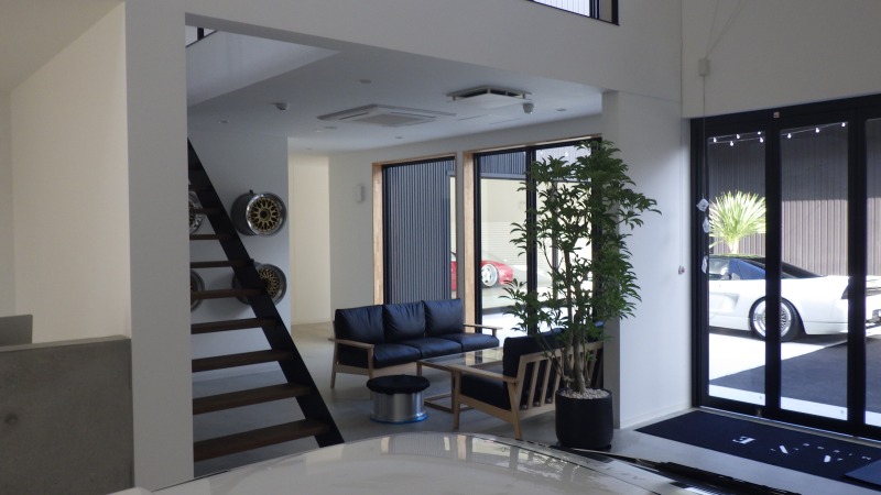 こちらはお客様のこだわりのショールームになります。天井がとても高くて開放感があります。